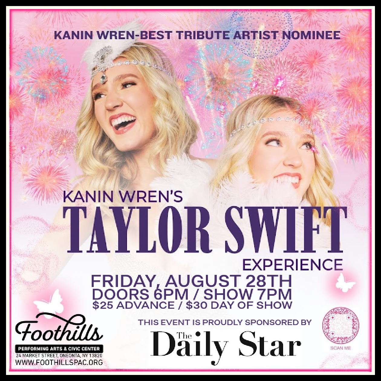 Kanin Wren’s Taylor Swift Experience celebrates all eras, including the newly added Life of a Showgirl, with a full live band, iconic looks, and powerhouse vocals. Kanin delivers a joyful, emotionally connected concert experience that proves she’s destined for the stage. This event is proudly sponsored by The Daily Star!