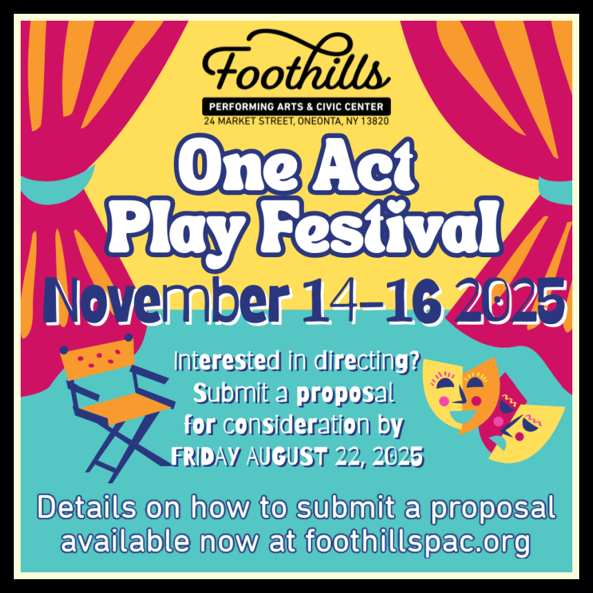 Foothills Performing Arts Center is now accepting submissions for its first ever One Act Play Festival that will be held on November 14th and 15th 2025 at FPAC in the Loft Theater!